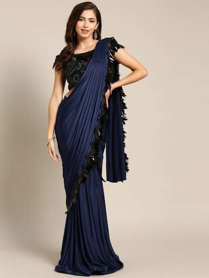Midnight Blue Designer Ready To Wear Lycra Saree